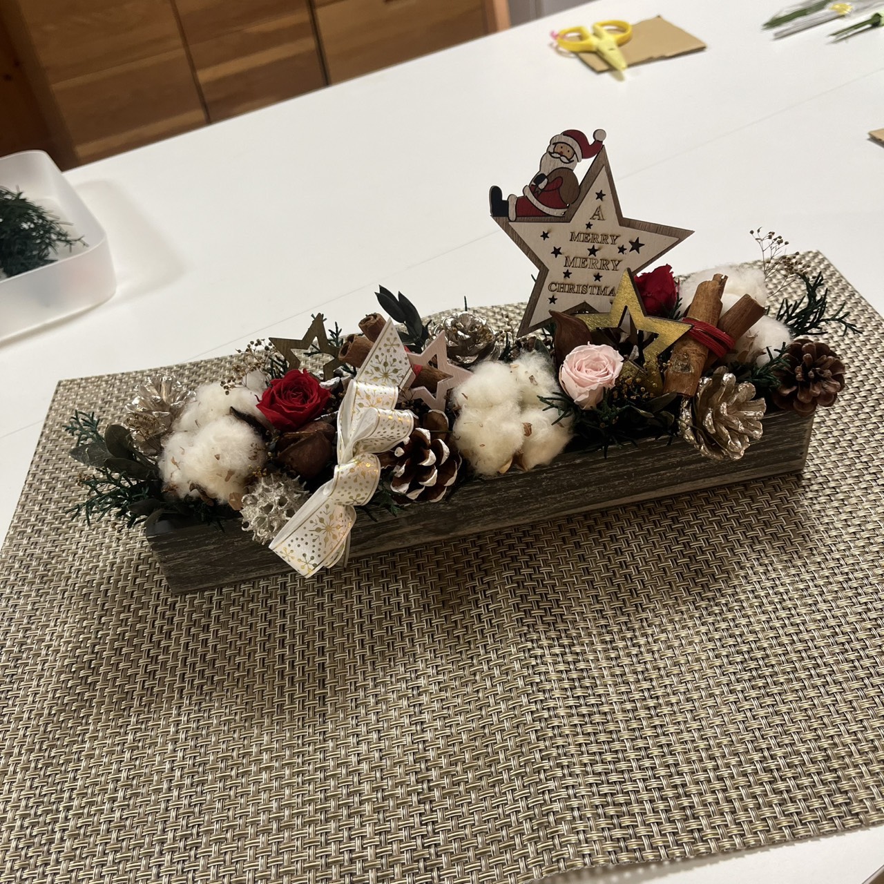 今月のフラワーデザイン教室ではクリスマスのアレジメントをしました。